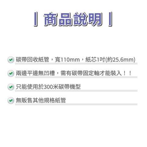 1吋芯紙管/軸寬110mm/無凹槽/300M機型碳帶回收使用